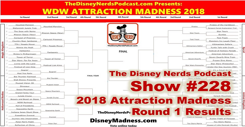 Don’t forget The Disney Nerds Podcast 2018 “Attraction Madness” Tournament! visit www.DisneyMadness.com and Vote TODAY!