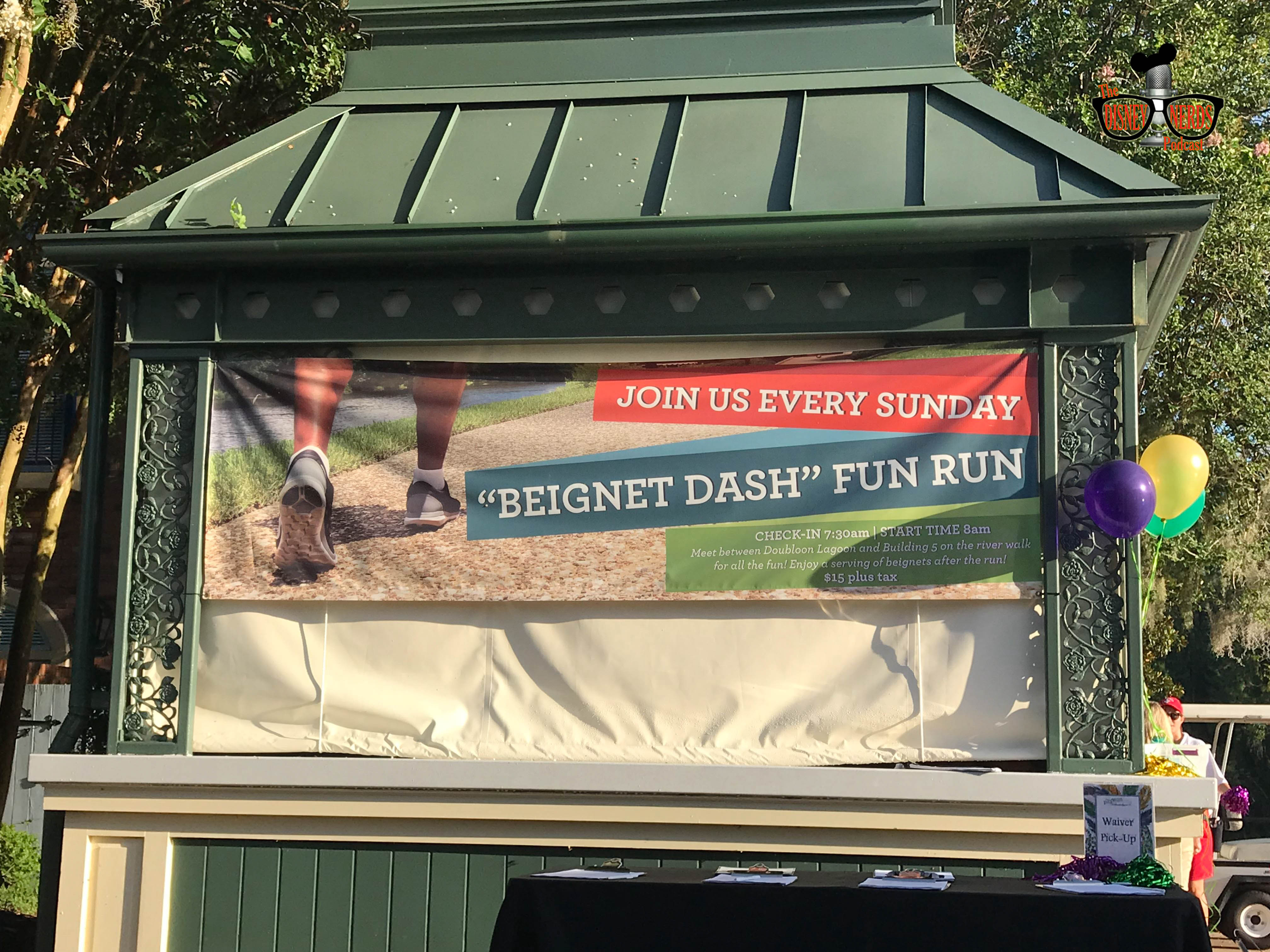When I first found out about the Beignet Dash a couple of weeks before a trip I tried to do a little research. Oddly, there was not a lot to be found so I’m not sure if this is something that Disney will have all the time. What I did find was every Sunday morning Port Orleans French Quarter hosts their Beignet Dash starting at 8 am (they ask you to arrive at 7:30 am for registration). The little bit that I did find online asks for you to reserve your space before arrival by calling the Disney recreation line which I did about a week before my trip. I did notice that some people did not pre-register but keep in mind that even though some people didn’t, it’s always better to go ahead and reserve your spot before the race especially as this race grows in popularity.