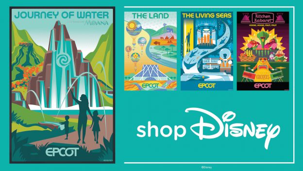 “Make way, make way!” The first screen print poster themed to the upcoming Journey of Water, Inspired by “Moana” experience is available now and has kicked off this yearlong series of limited release posters featuring the four EPCOT neighborhoods that are part of the park’s historic transformation currently underway. The initial set of posters – launching over the next few months – highlight experiences from the World Nature neighborhood including Soarin’ Around the World, The Land and The Living Seas.