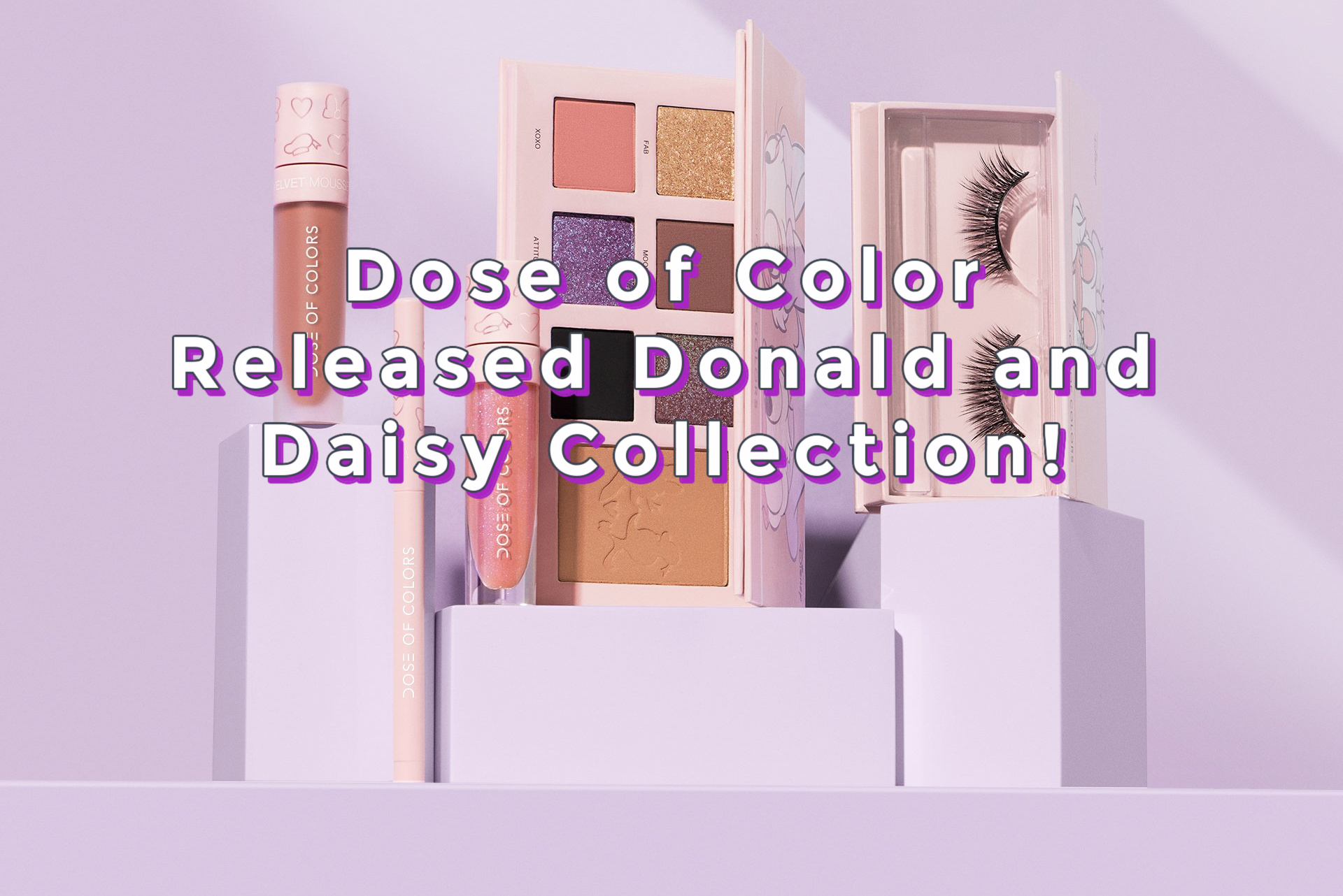 The collection consists of an eyeshadow & bronzer palette, lashes, lip liner, lip gloss, and a lipstick. Now I have to admit that I feel like this set is a little more Daisy than Donald with it’s purples and pinks but it’s still a beautiful collection. Dose of Colors does an amazing job with their products and this collection is defintely something you can use everyday and dress it up for a night out too!