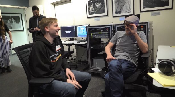 After touring the Studio lot and paying a visit to Marvel Studios’ headquarters, Seth had the opportunity to meet the sound editing team working on Black Widow. He participated in a post-production sound mixing session of the film and sat with different sound teams to learn more about how each group contributes to the audio elements of a movie scene.